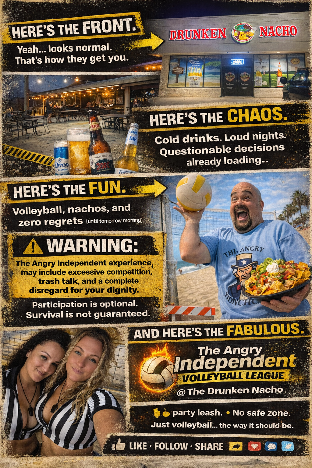 Want the feeling of the beach between your toes and have fun in the sun? Join the Drunken Nacho Volleyball League!